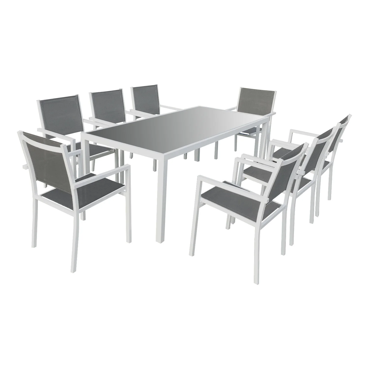 Salon de jardin BARI en textilène gris 8 places - aluminium blanc Happy Garden