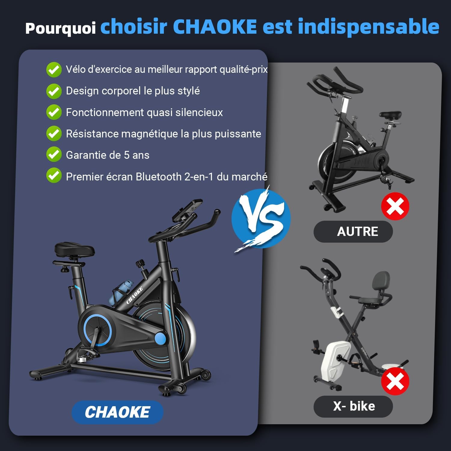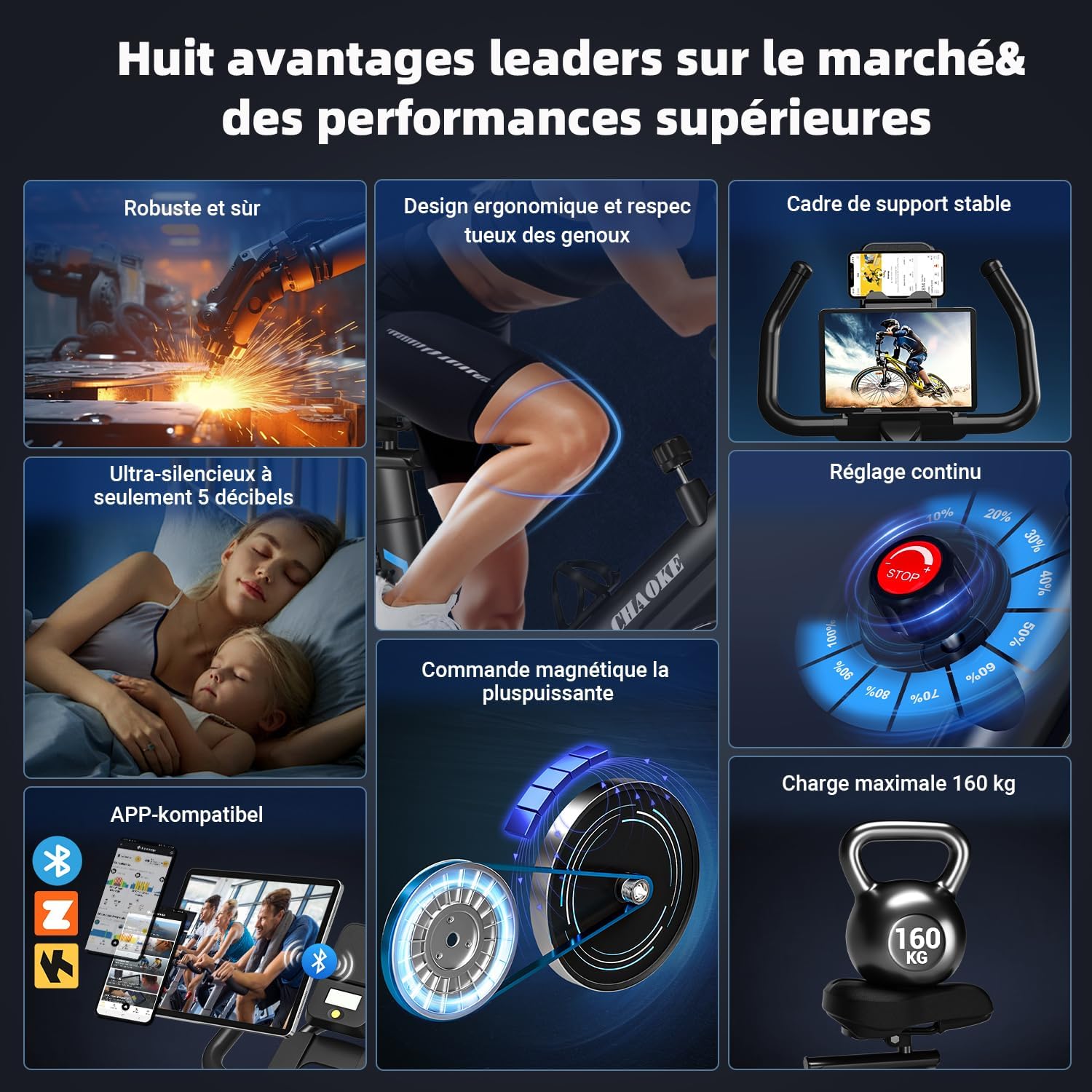 Velo d Appartement Silencieux avec Résistance Magnétique Réglable, Vélo d'appartement avec APP, Vélo d'exercice Moniteur LCD, Siège Confortable, Pour Entraînement Cardio, Capacité 160KG