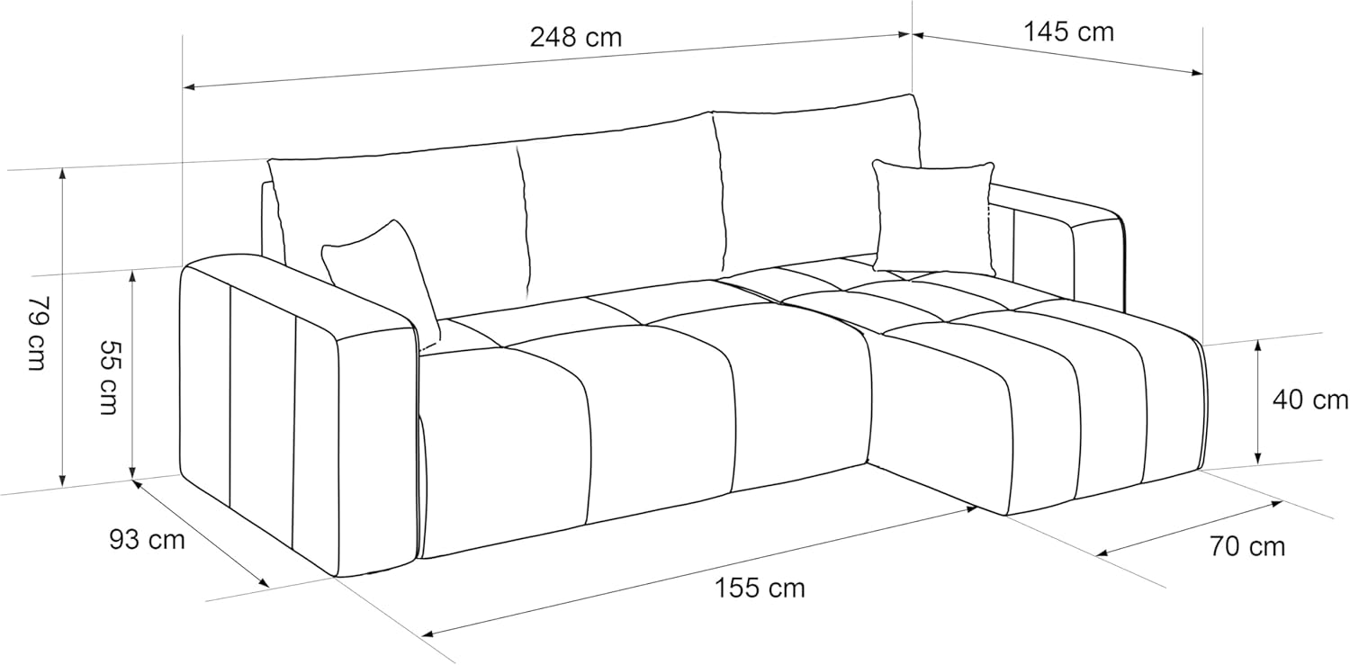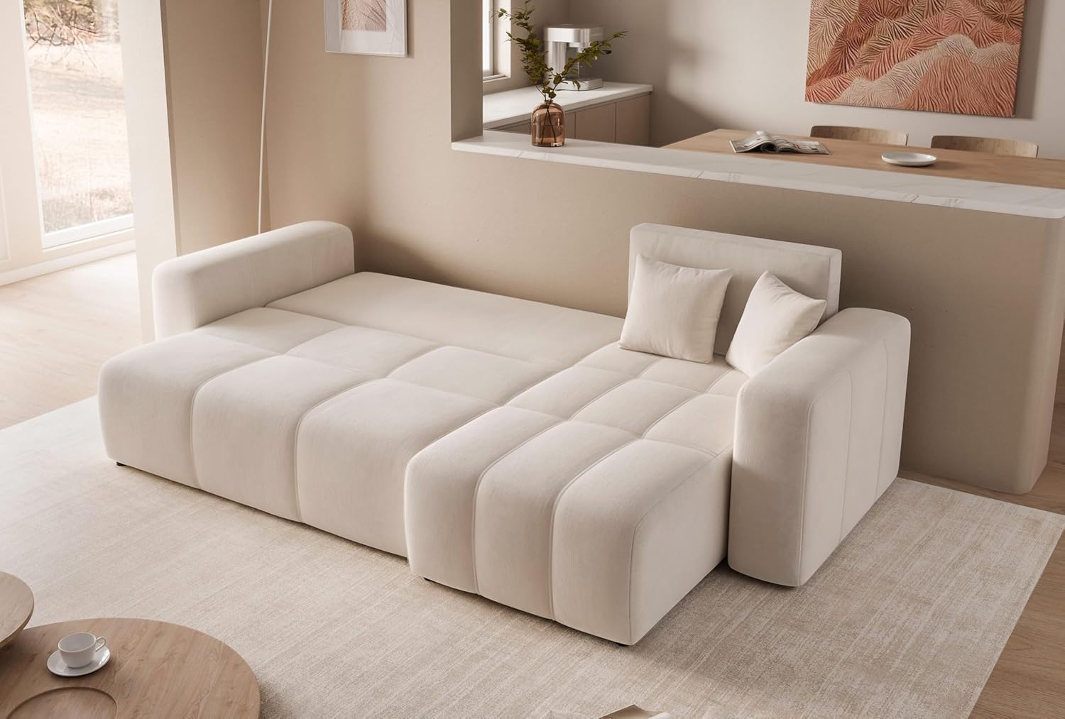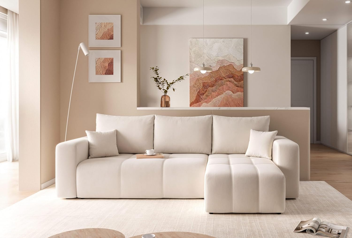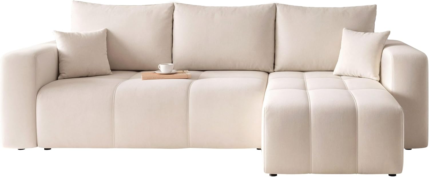 Canapé d'angle Convertible 145x248 à Gauche ou à Droite - Canapé 3 Places Convertible Beige avec Espace de Rangement