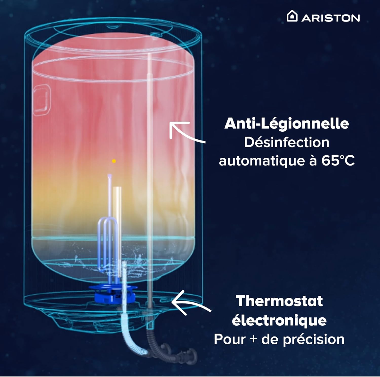 PRO1 ECO 80L - Chauffe-eau Electrique Vertical Mural Ø450 mm - Intelligent Fonction ECO - Classe B - Conçu et fabriqué pour être installé en France