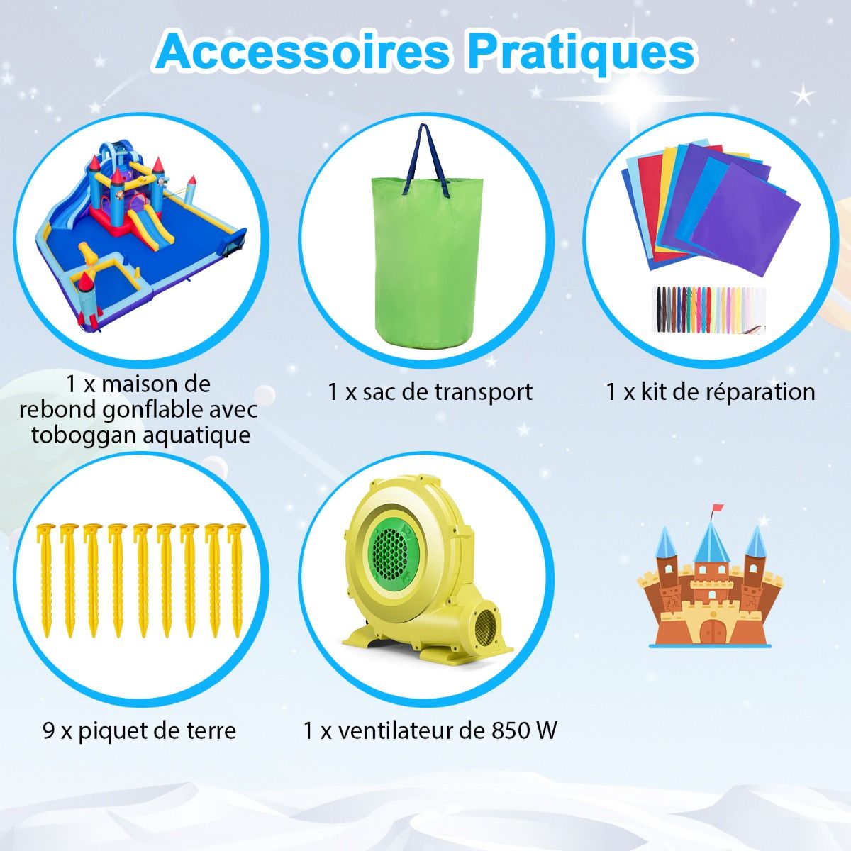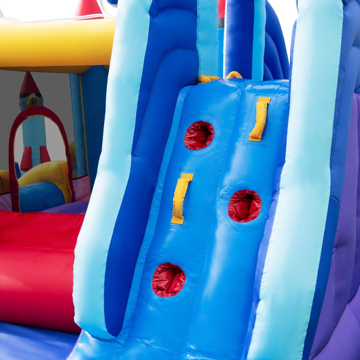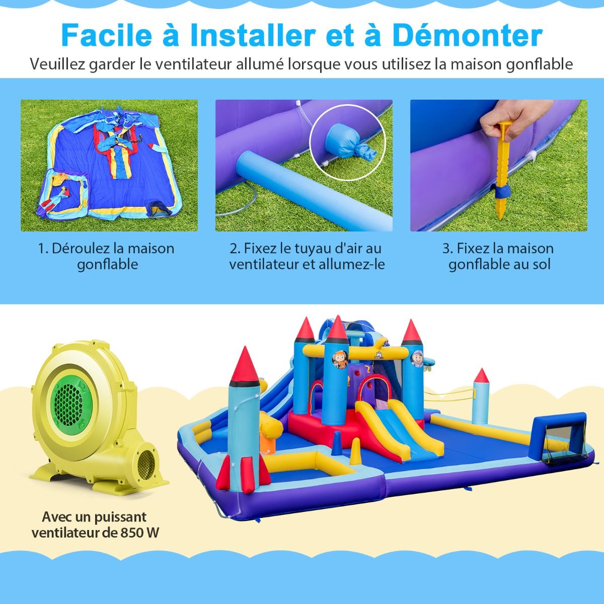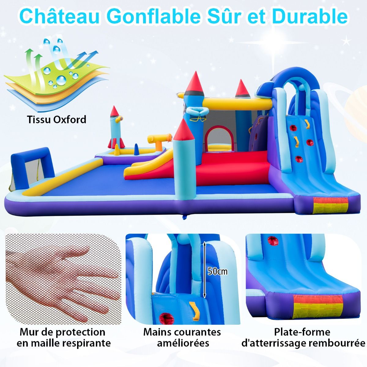 Château Gonflable à Toboggans Aquatiques Thème de La Fusée pour Enfants Piscine Zone de Saut Pistolet à Eau Escalade Souffleur de 850 W Multicolore