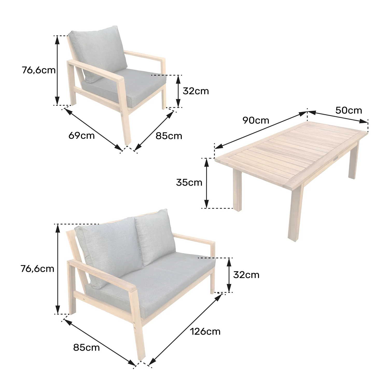 Salon de jardin en acacia 4 places GILI - coussins sable Happy Garden