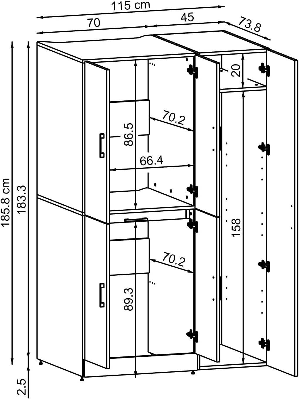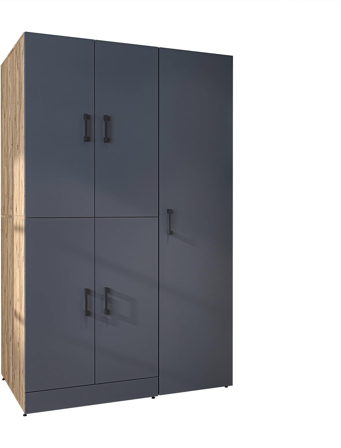 ROOMART Dora - Armoire de machine à laver - Pour sèche-linge et machine à laver - En 4 couleurs - Avec portes et panneau coulissant - Blanc - Chêne blanc - Chêne anthracite - Chêne blanc (chêne blanc)