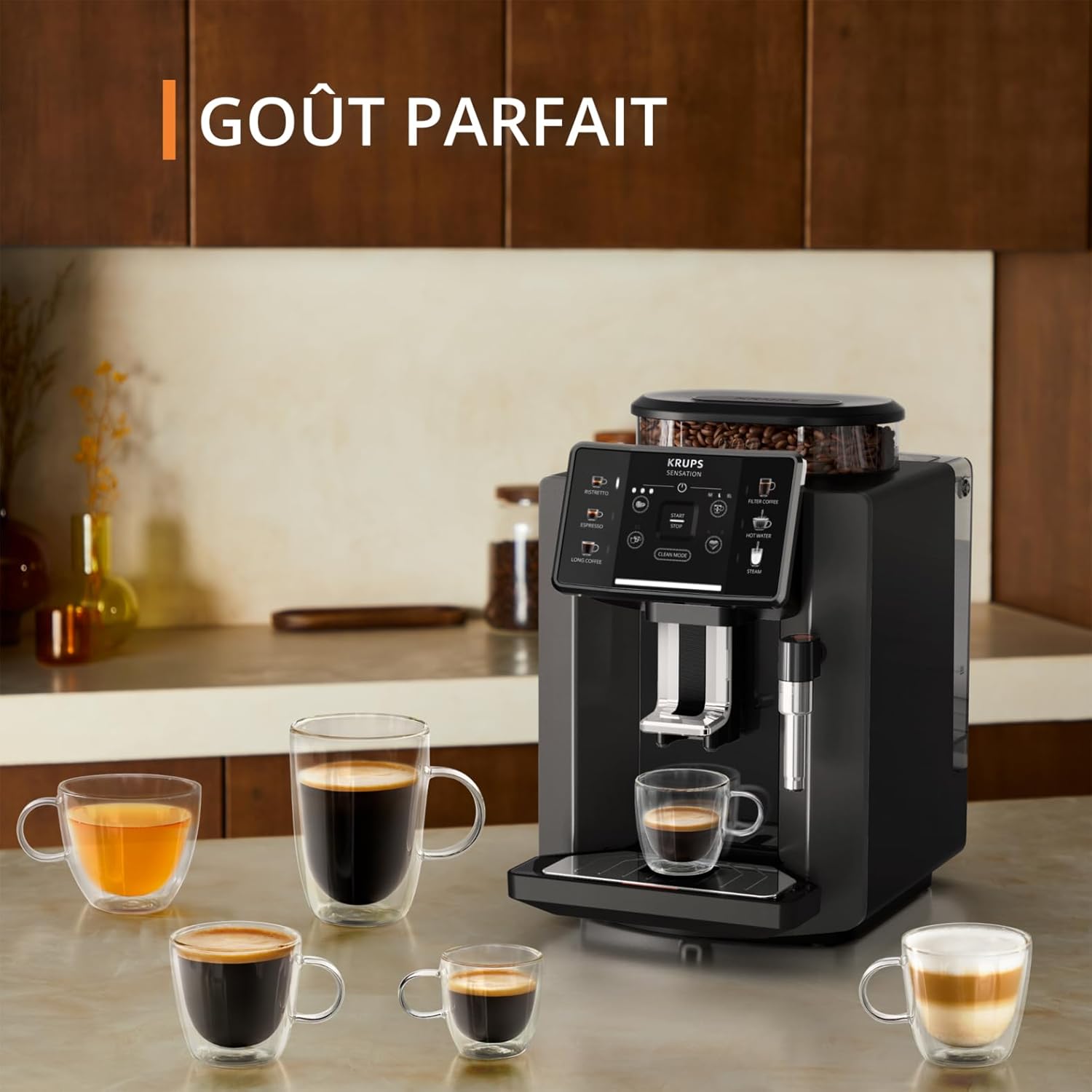 Sensation C50,Machine à café grains,5 Boissons en accès direct,Interface tactile couleur,Facile à utiliser,Nettoyage sans effort,Buse manuelle Cappuccino,Fabriqué en France EA910810 -